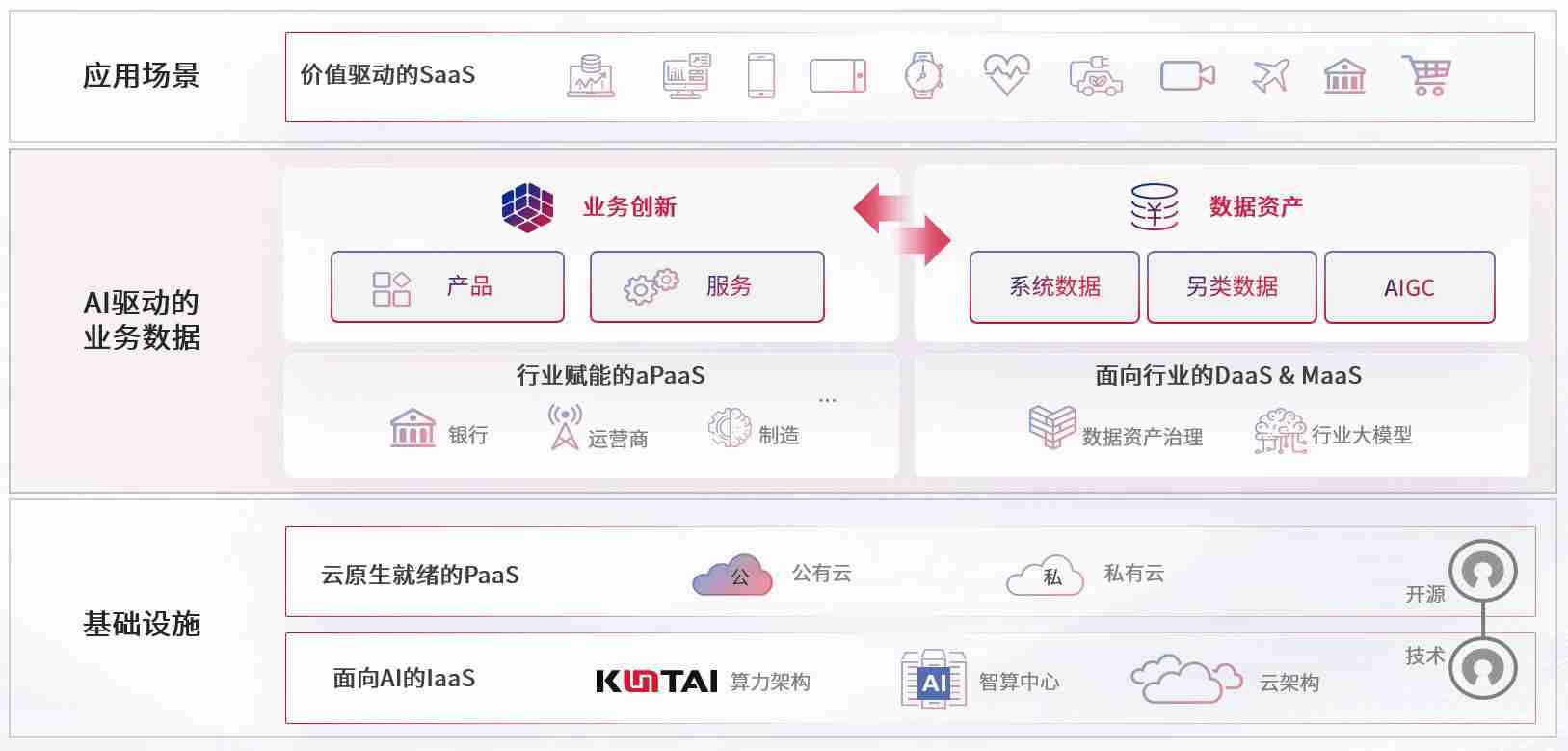 数字时代,,,,围绕企业数字化转型的关键要素,,jackpot数码开创性的提出“数云融合”战略和技术体系框架,,,着力在云原生、、、、数字原生、、、AI原生和信创产业上架构产品和服务能力,,为处在不同数字化转型阶段的快消零售、、、汽车、、、、金融、、医疗、、、政企、、、、教育、、、、运营商等行业客户提供泛在的敏捷IT能力和融合的数据驱动能力,,构建跨界融合创新的数字业务场景和新业务模式,,,,助力企业级客户建立面向未来的核心能力和竞争优势,,,全面推动社会的数字化、、、智能化转型升级。。